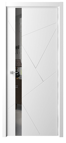 Дверь Геометрия-6 ширина 80 см Белый Эмаль Стекло белое кромка В цвет полотна в Краснодаре